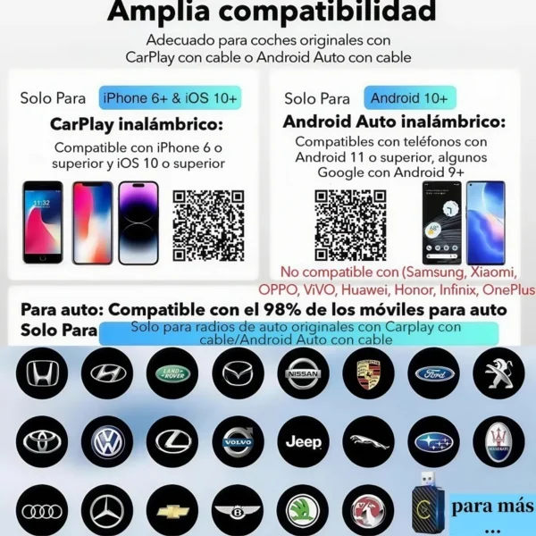 • Vehículos: todos los que tengan CarPlay/Android Auto con cable.